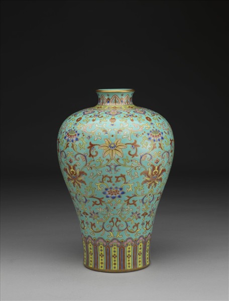 湖綠地粉彩花卉梅瓶