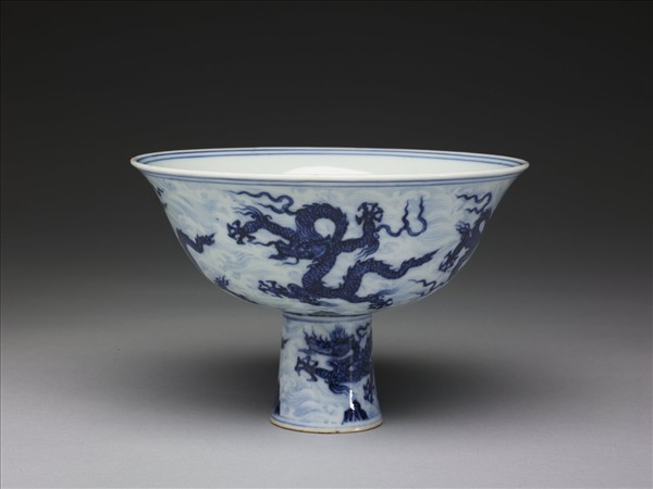 青花波濤龍紋高足碗
