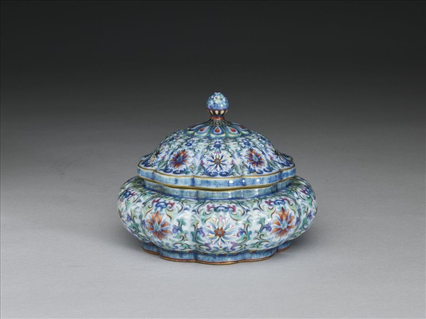 鬥彩番蓮紋瓜式盒