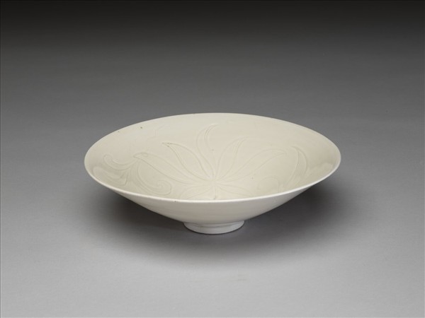白釉劃花蓮荷紋碗