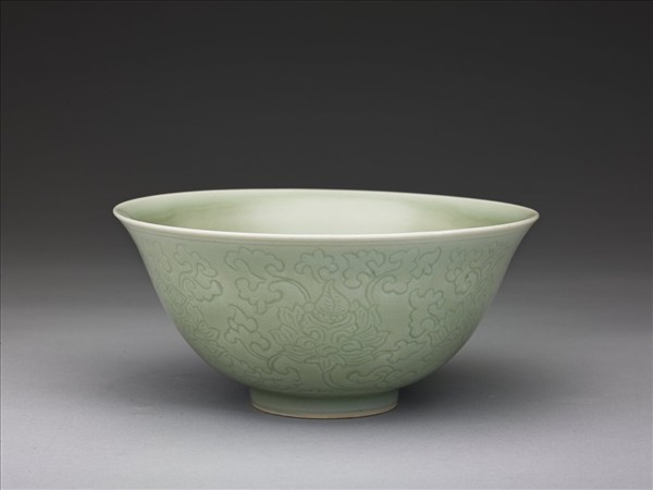 青瓷暗花番蓮紋碗