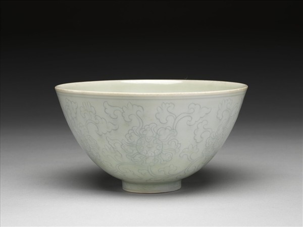 淺青釉劃花纏枝花卉紋蓮子碗