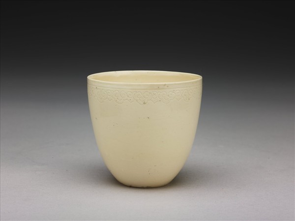 白瓷暗花如意雲紋杯