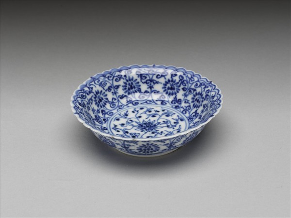 青花菊瓣口番蓮紋碟