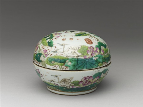 粉彩蓮塘鷺鷥紋蓋盒