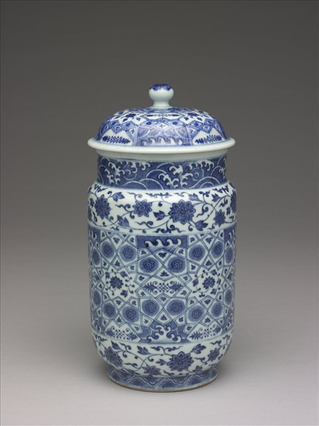 青花幾何紋壯罐