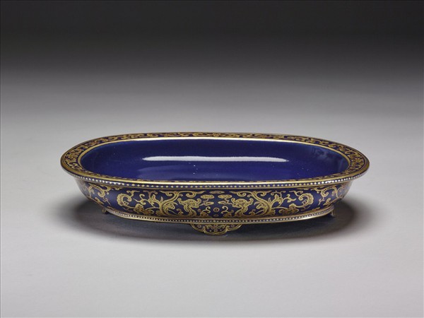 霽青釉描金夔龍紋盆托