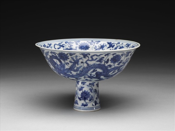 青花纏枝花卉龍紋高足碗