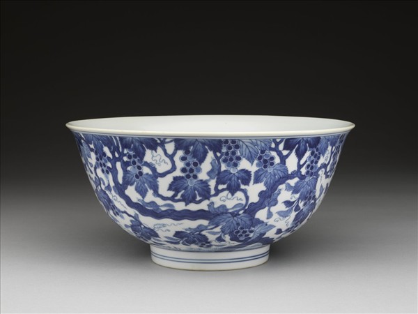 青花松鼠葡萄紋碗