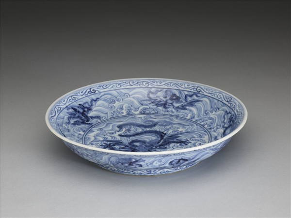 青花波濤海獸紋盤