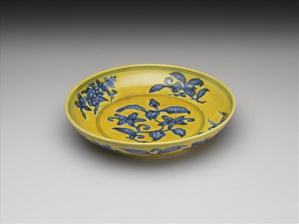 黃地青花花果紋盤