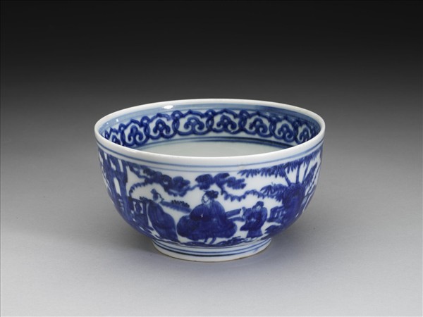 青花山水人物圖碗