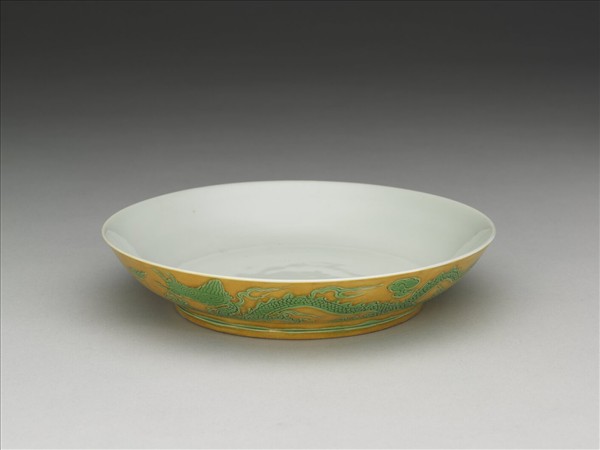 黃釉綠彩雙龍戲珠紋盤