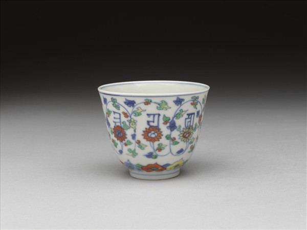 鬥彩番蓮梵文杯