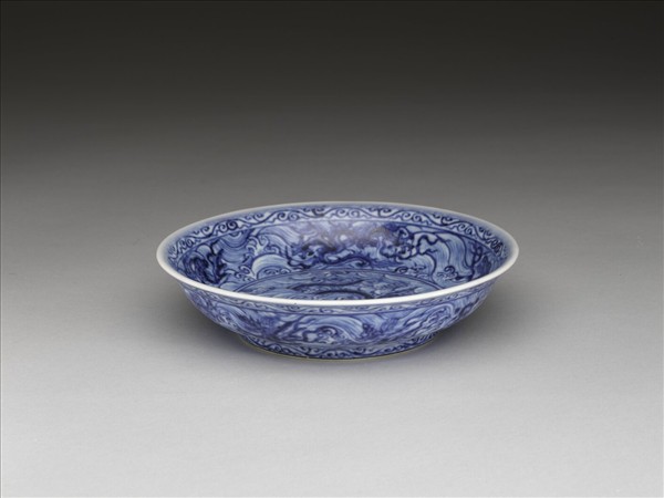 青花波濤海獸紋盤