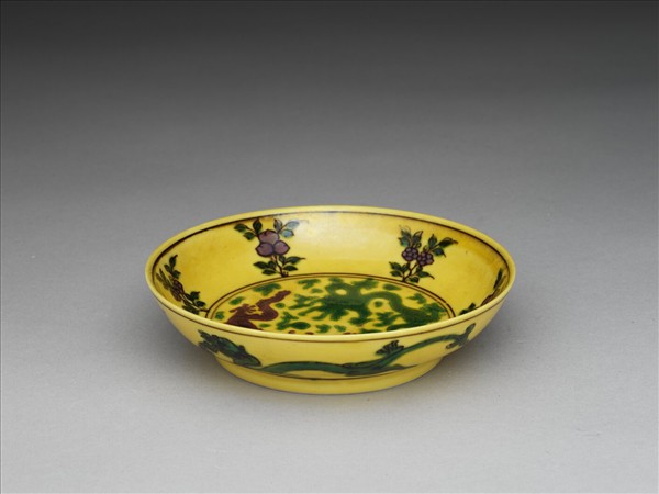 素三彩黃地花果龍紋盤