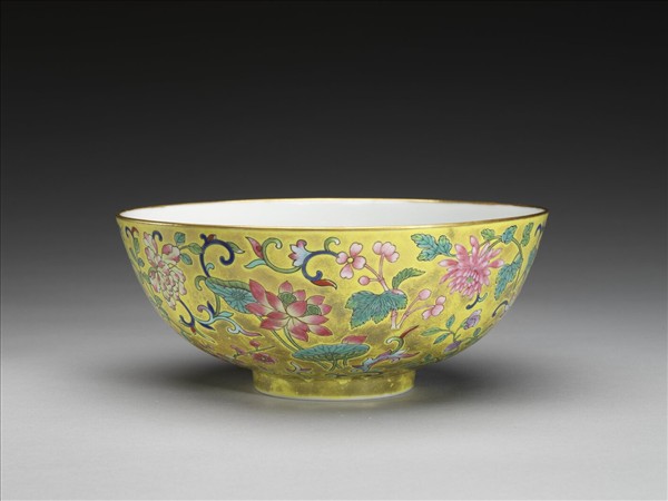 粉彩黃地纏枝花卉紋碗