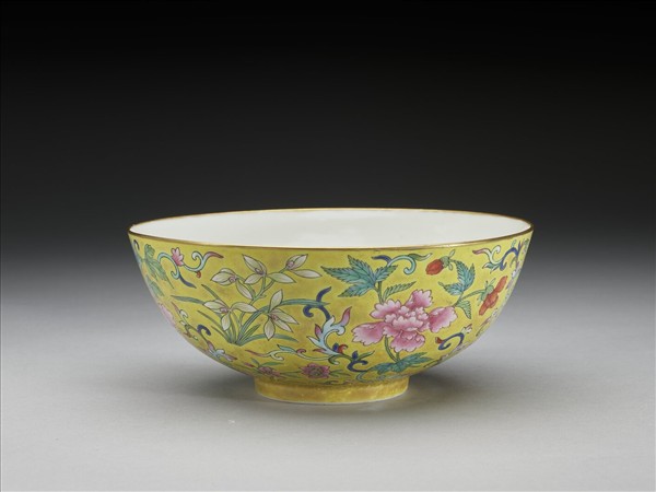 粉彩黃地纏枝花卉紋碗