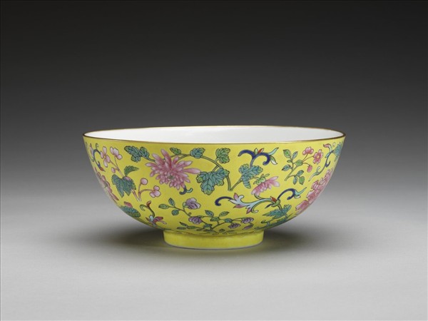 粉彩黃地纏枝花卉紋碗