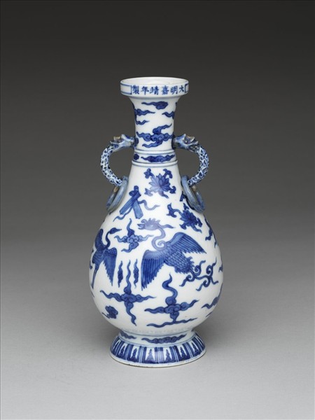 青花雲鳳紋獸耳瓶