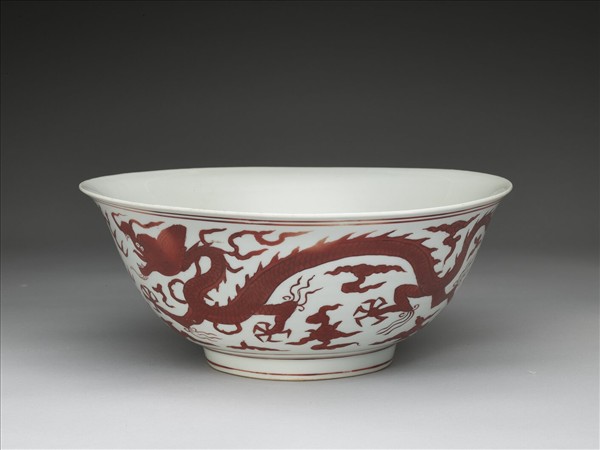 描紅雙龍戲珠紋碗
