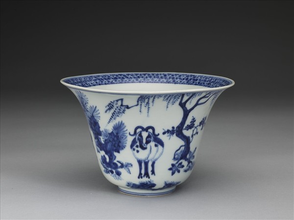 青花三羊開泰圖仰鐘式碗