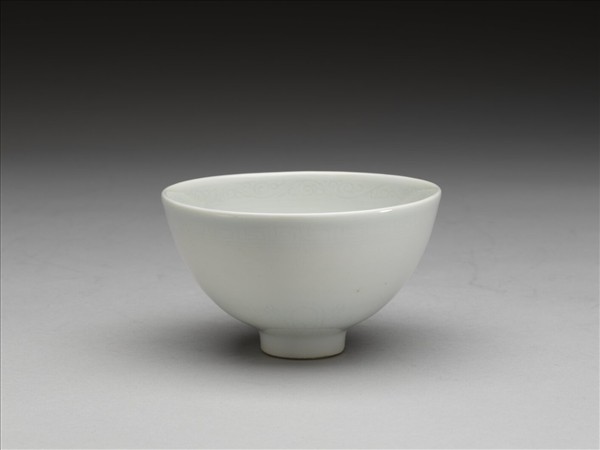甜白釉暗花花果紋蓮子茶鍾