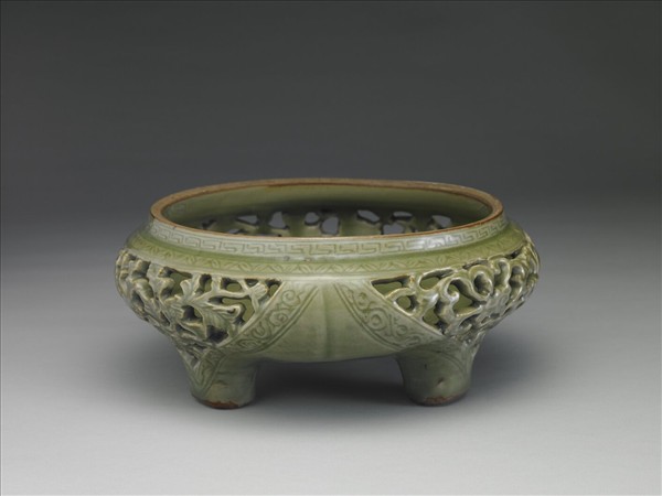 龍泉窯 青瓷鏤空花卉紋香薰