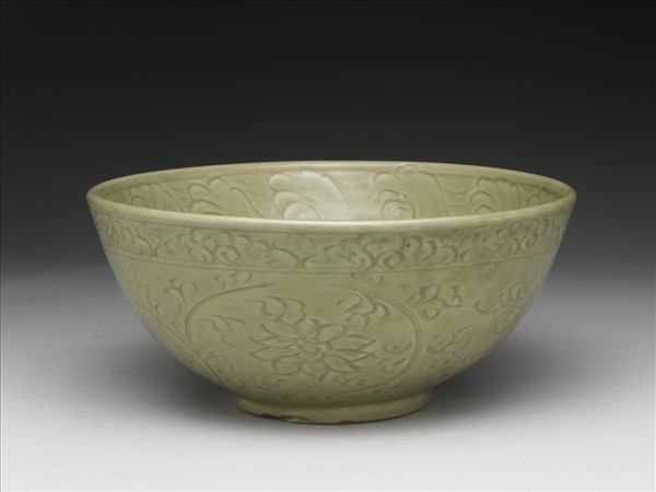 青瓷劃花波濤番蓮紋碗