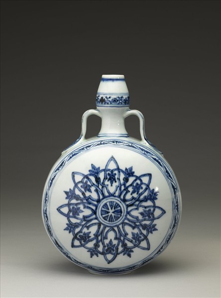 青花幾何花卉葫蘆扁壺