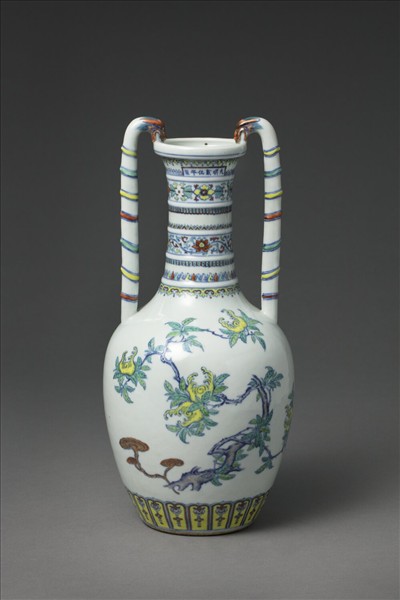 鬥彩福壽紋龍耳瓶