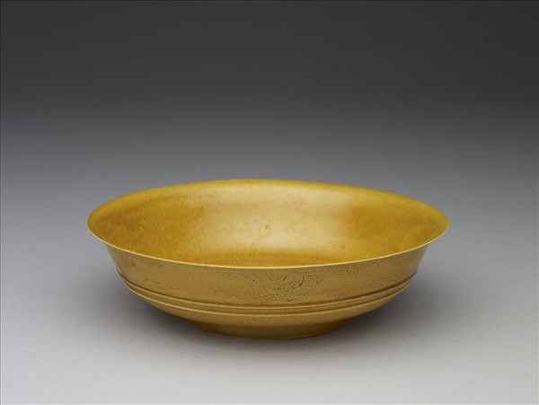 黃釉雙龍戲珠紋盤