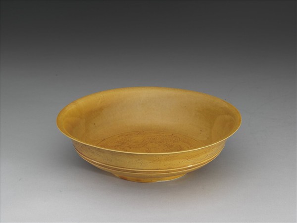 黃釉雙龍戲珠紋盤