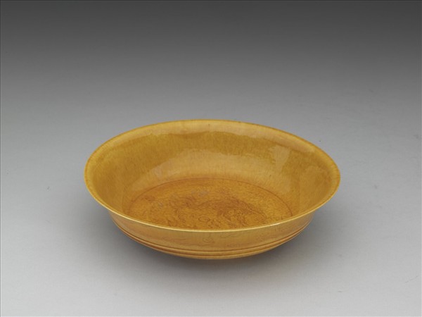 黃釉雙龍戲珠紋盤