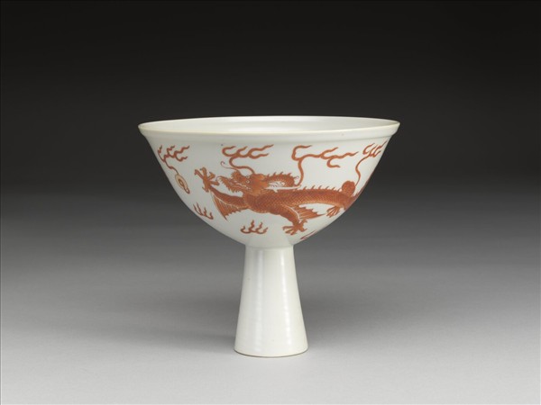 描紅雙龍戲珠紋高足碗