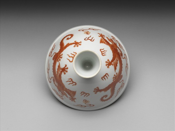 描紅雙龍戲珠紋高足碗