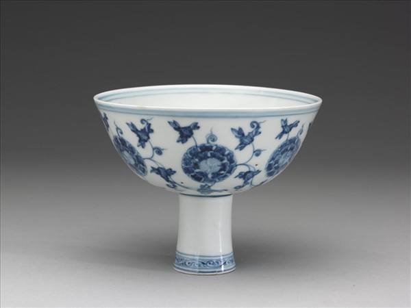 青花團花紋高足碗