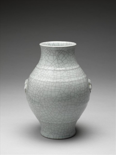 仿官釉雙耳弦紋瓶