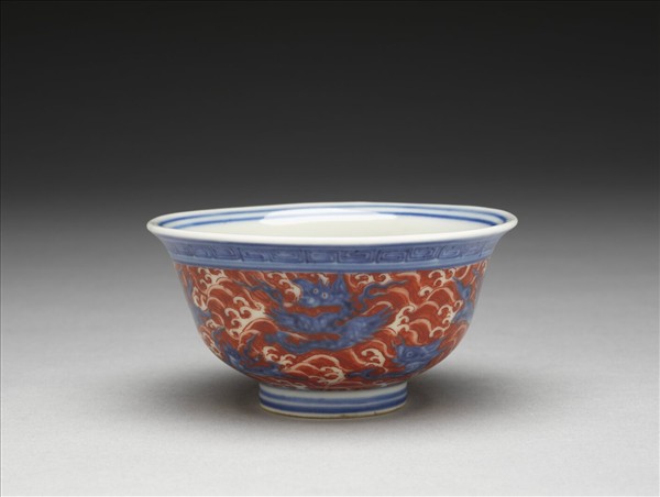青花描紅海獸紋碗