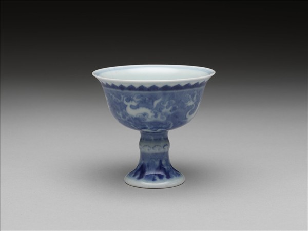 青花波濤海獸紋高足杯