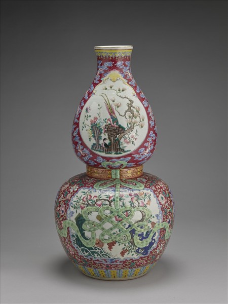 粉彩紅地花鳥紋葫蘆瓶