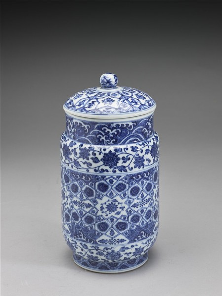 青花波濤番蓮紋蓋罐