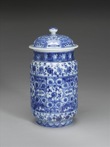 青花波濤番蓮紋蓋罐