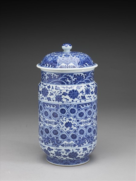 青花波濤番蓮紋蓋罐