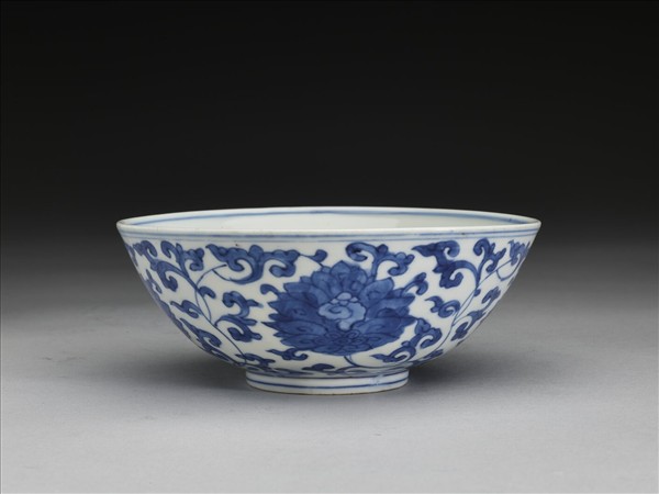 青花番蓮壽字紋碗