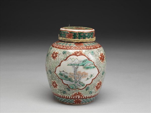 五彩山水花卉紋蓋罐