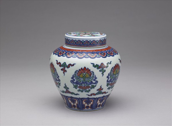 鬥彩蓮紋蓋罐