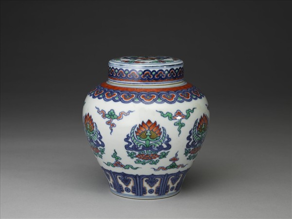 鬥彩蓮紋蓋罐