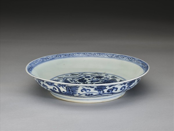 青花雙鳳穿蓮紋盤