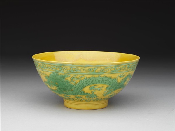 黃地綠彩龍鳳紋碗